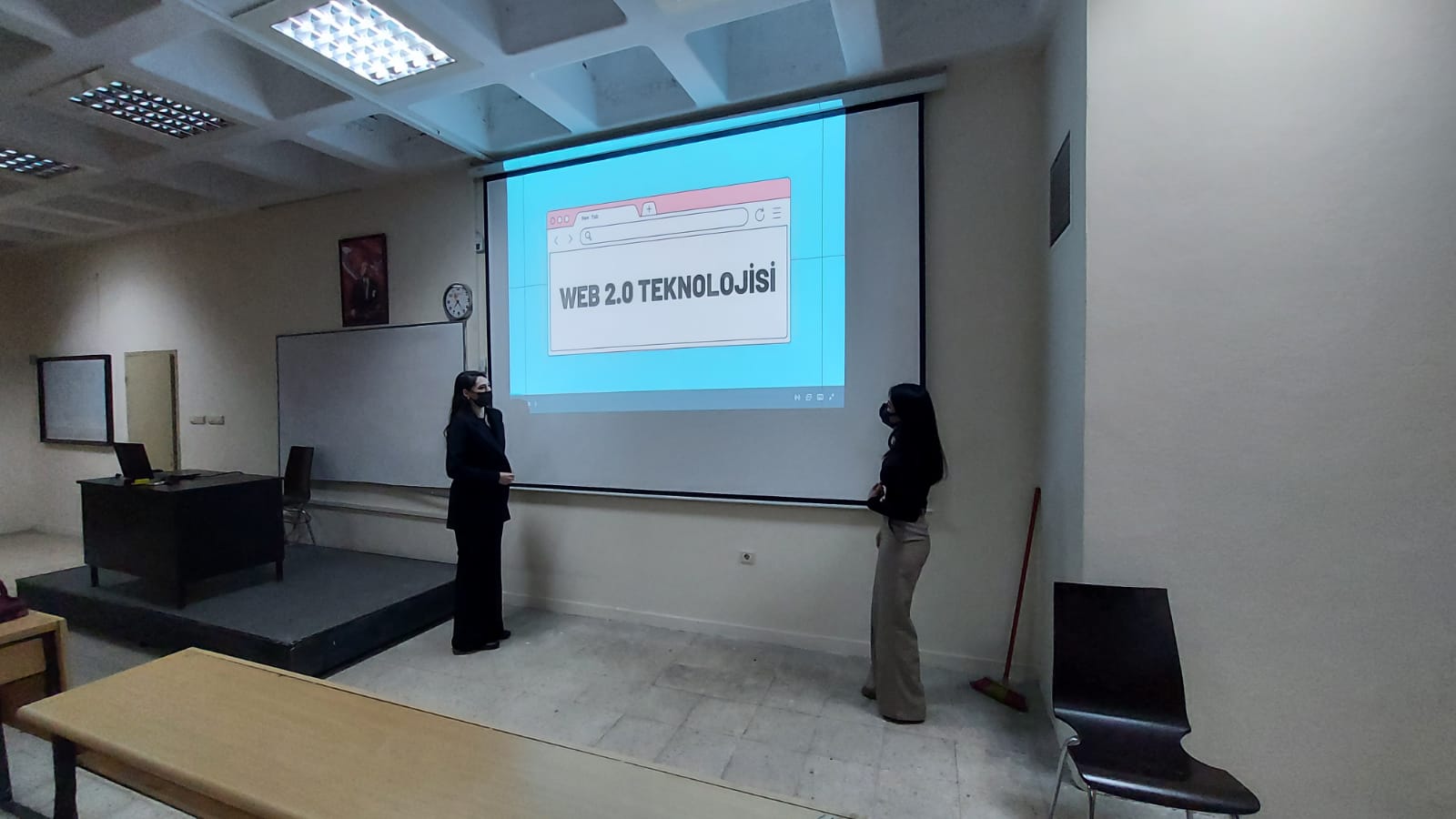 Türkçe öğretmenliği 4. sınıf öğrencileri tarafından pedagojik formasyon öğrencilerine Web 2.0 araçlarının tanıtılması etkinliği düzenlendi. Türkçe öğretmenliği 4. sınıf öğrencilerimiz Elif İRFAN ve Gülçin KARAMAN tarafından pedagojik formasyon öğrencilerine Tubitak 2209/A öğrenci projesine hazırlık kapsamında Web 2.0 araçlarının tanıtılmasına yönelik bir etkinlik düzenlendi. Etkinikte Web 2.0 araçları hakkında verilen genel bilginin ardından "Wordwall" ve "Canva Sunum" programları ayrıntılı olarak tanıtıldı. Dersin sonunda pedagojik formasyon Türk Dili ve Edebiyatı ile ÇağdaşTürk Lehçeleri gruplarında eğitim alan öğrencilere bu programların kullanımıyla ilgili uygulama yaptırıldı. Son Güncelleme : 30.03.2022 16:36